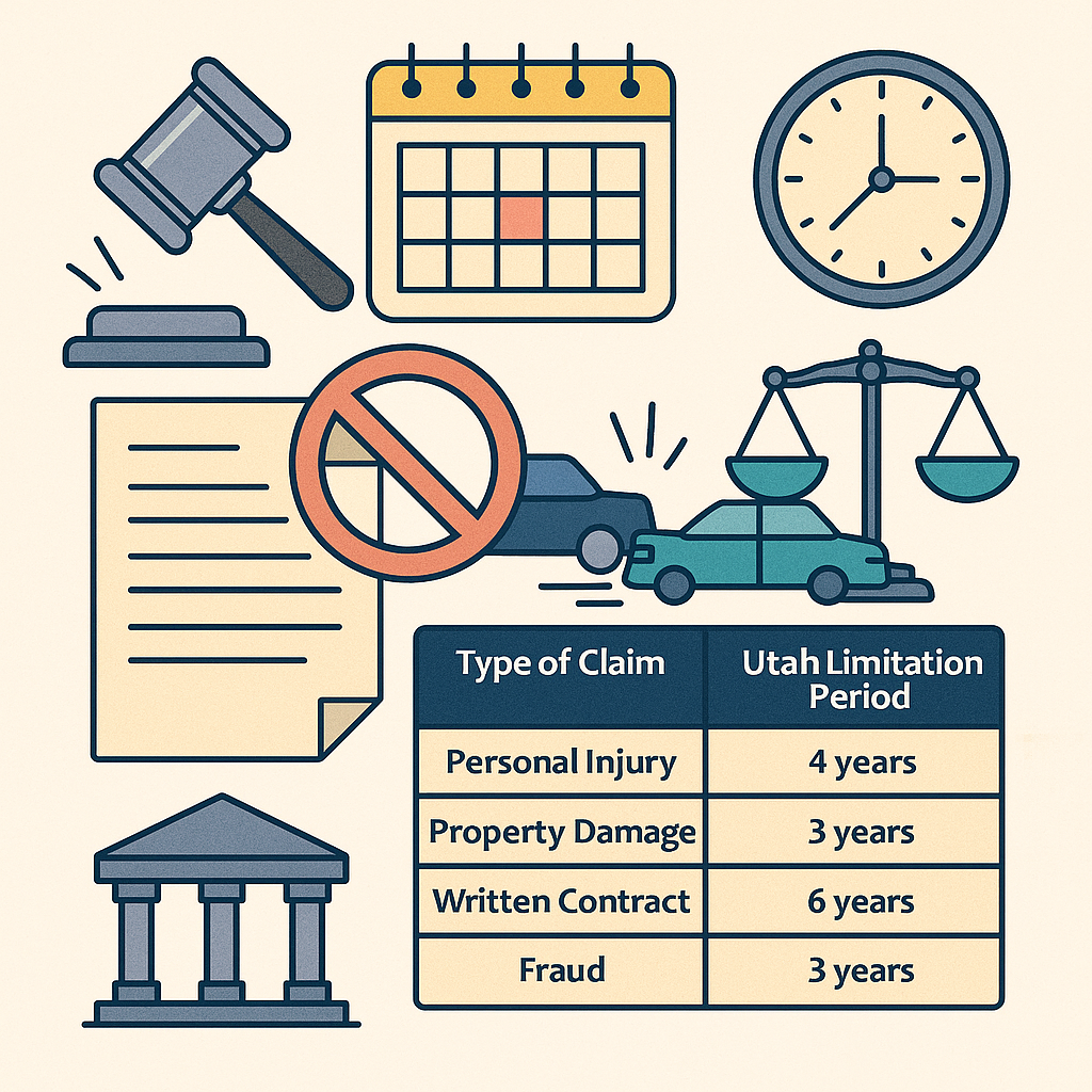 In Utah, if you miss the filing deadline for your lawsuit even by a day you can lose your right to bring the case. Whether it is a car accident, unpaid contract, property damage, or fraud claim, knowing the time limits is critical. This guide breaks down the major statutes of limitations that affect everyday Utah cases.