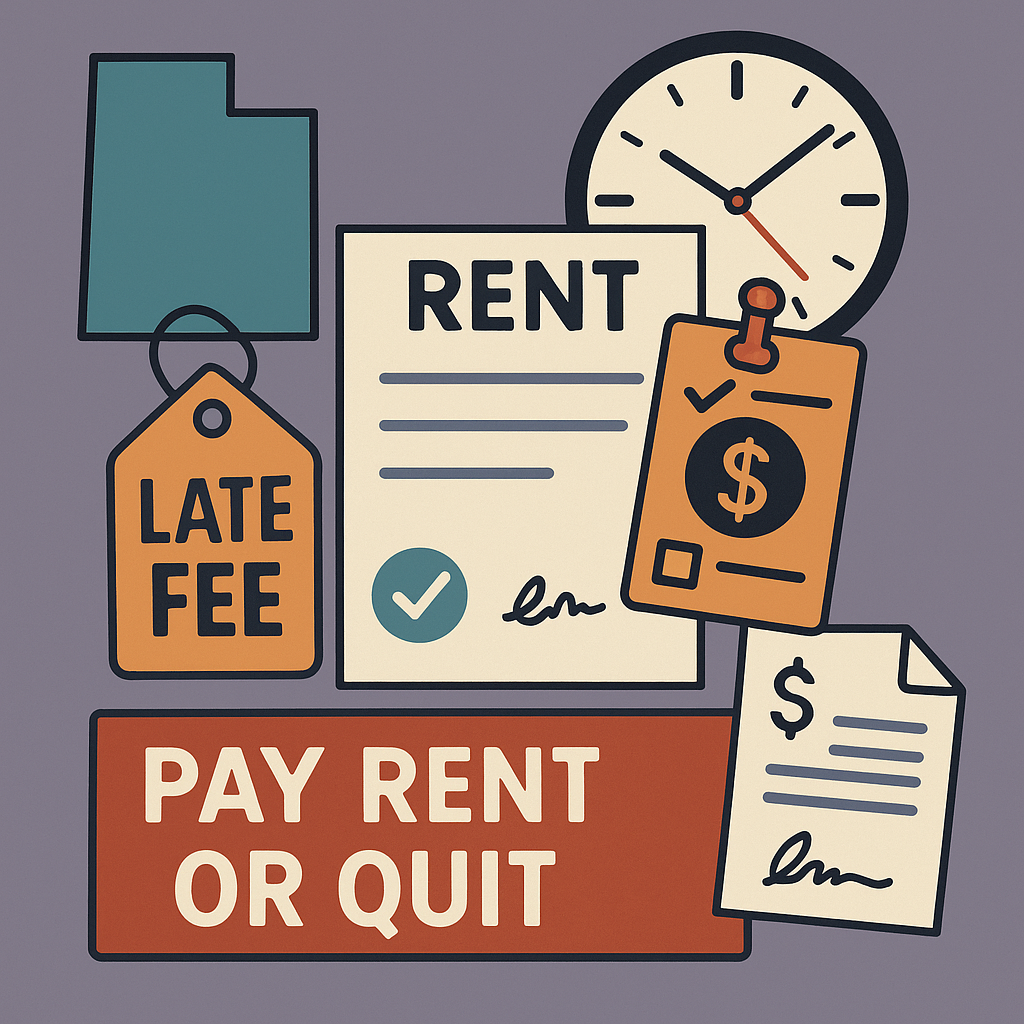Plain-English guide to due dates, late fees, grace periods, and pay-or-quit notices in Utah rentals